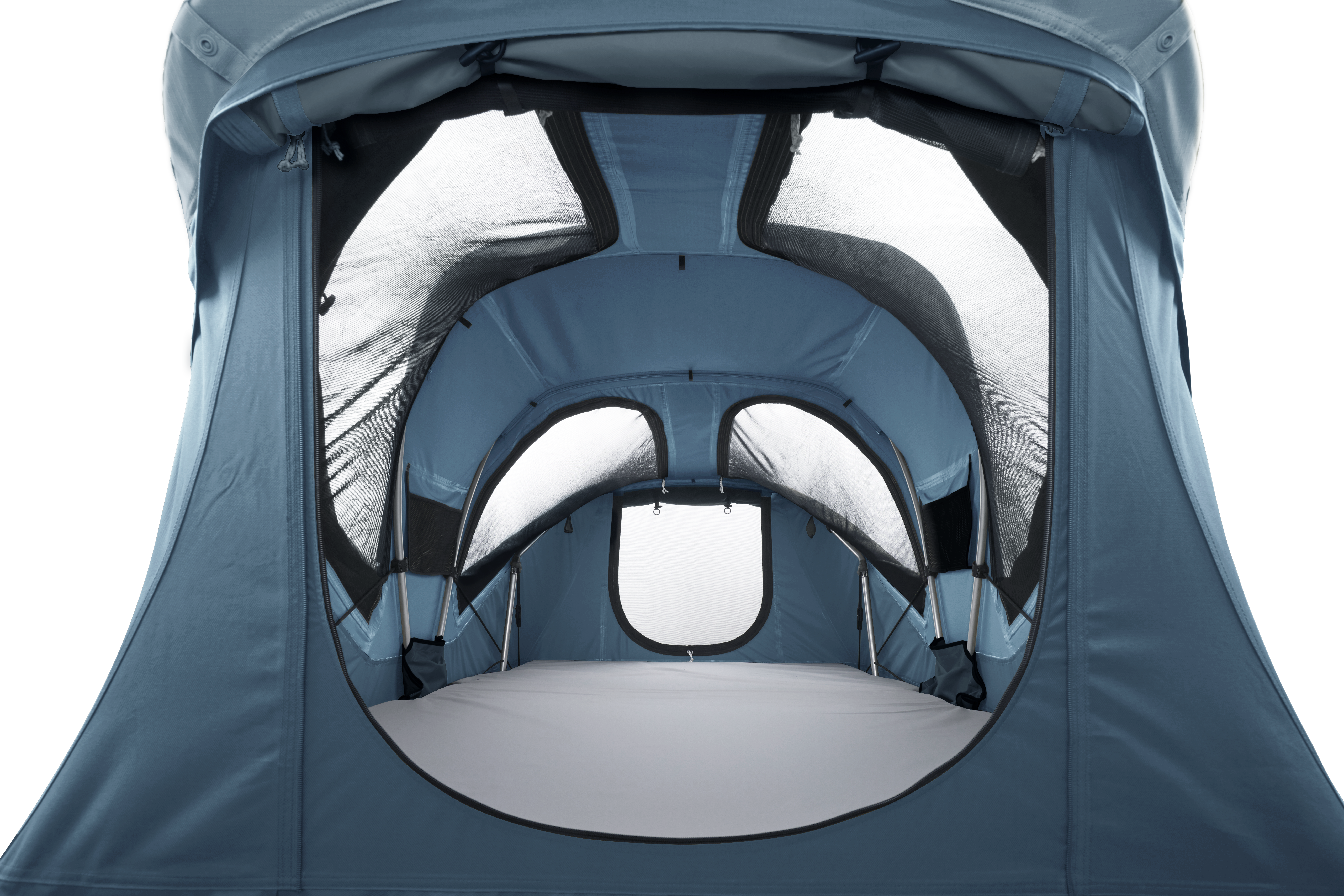 Das Thule Approach ist für eine einfache Nutzung konzipiert. Mit den innovativen Montagehalterungen kannst Du das Zelt in nur wenigen Minuten auf Deinem Dach montieren – doppelt so schnell wie bei herkömmlichen Dachzelten. Außerdem verriegeln die Halterungen das Zelt für zusätzliche Sicherheit am Dachträger. Das Thule Approach gehört zu den am schnellsten auf- und abbaubaren Zelten mit weicher Außenhülle auf dem Markt. Sobald Du an Deinem Zielort angekommen bist, öffnest Du einfach den Reißverschluss der Reiseabdeckung, klappst den Boden auf und bist in weniger als 3 Minuten bereit zum Zelten.