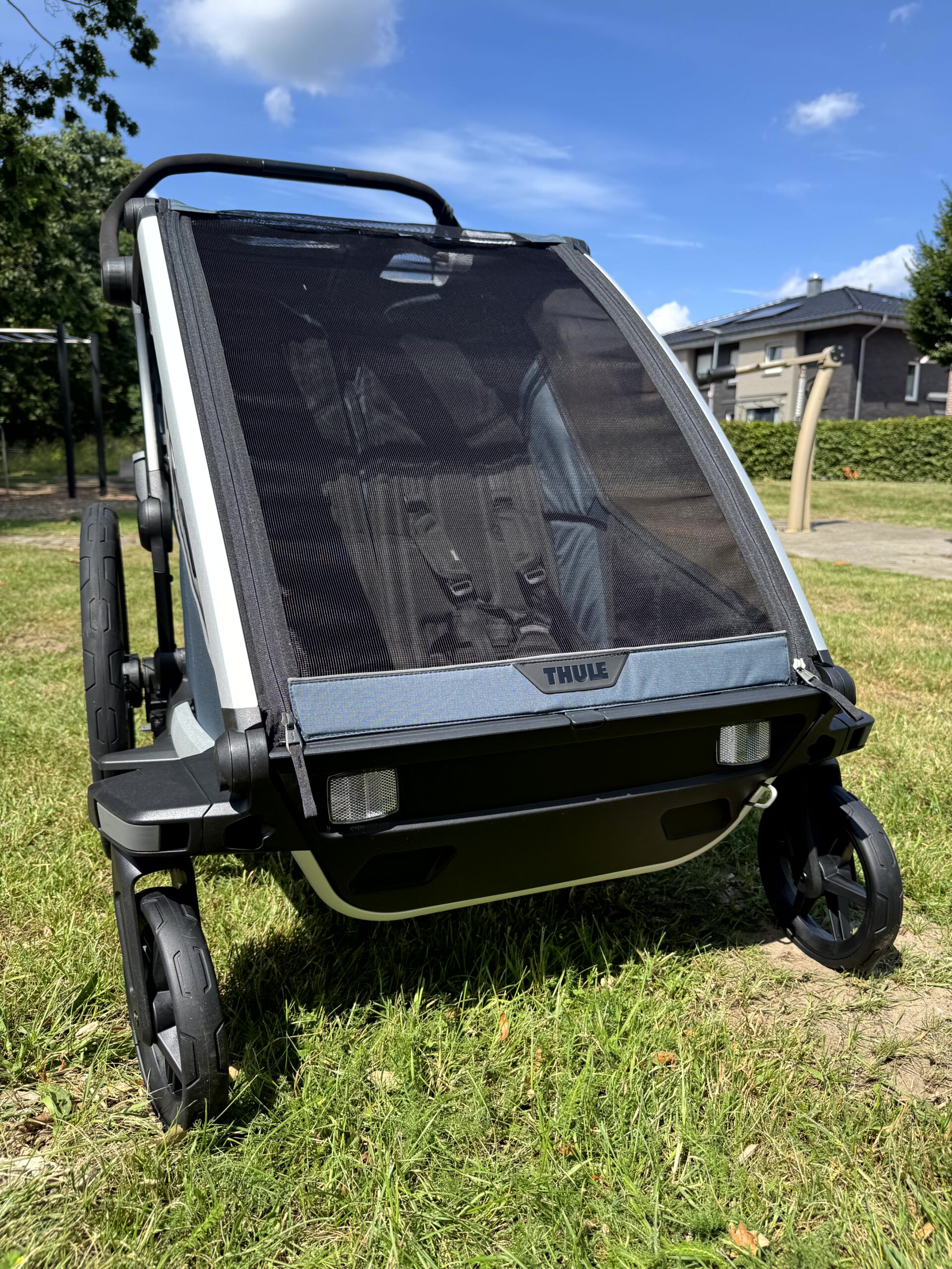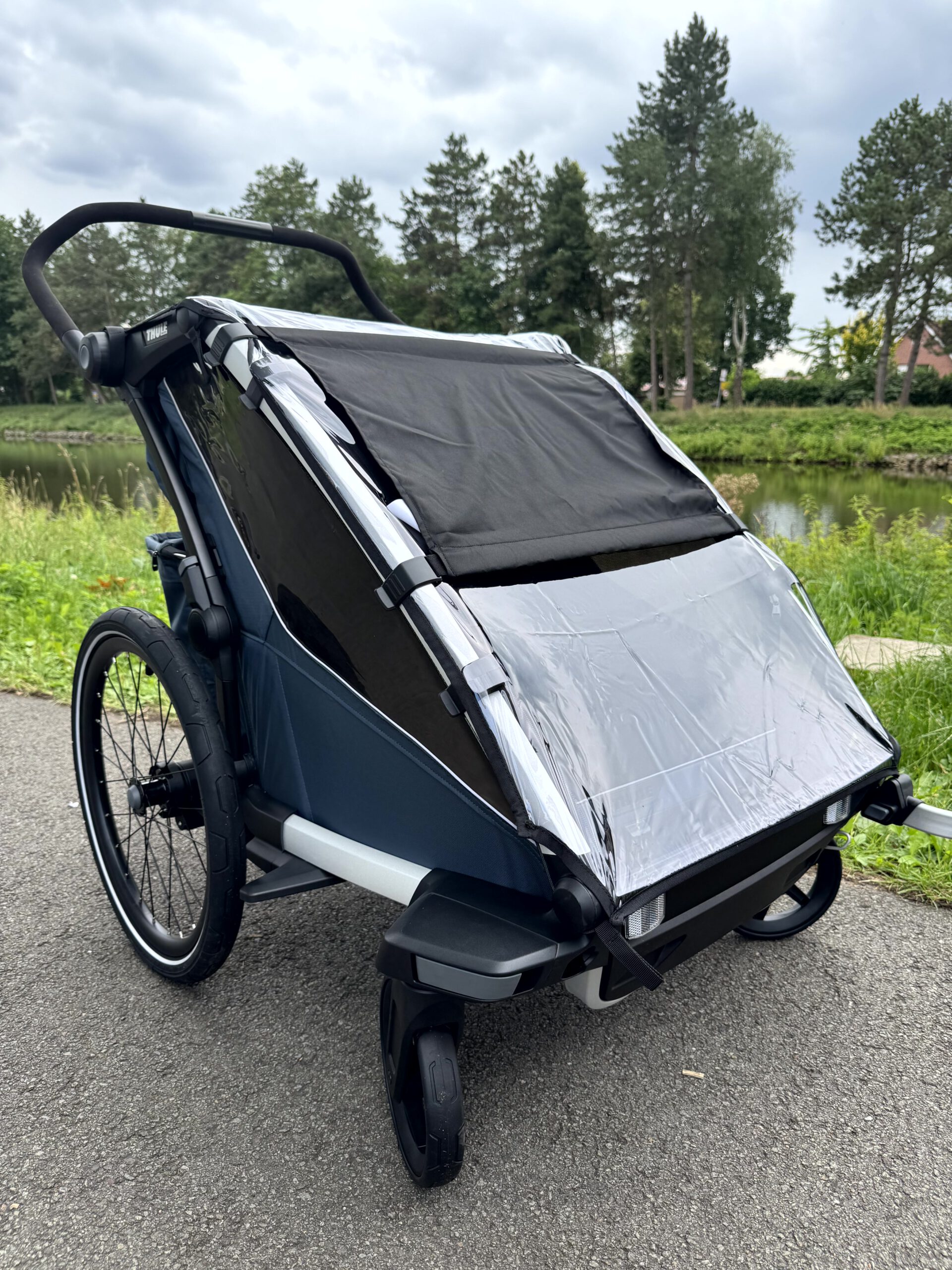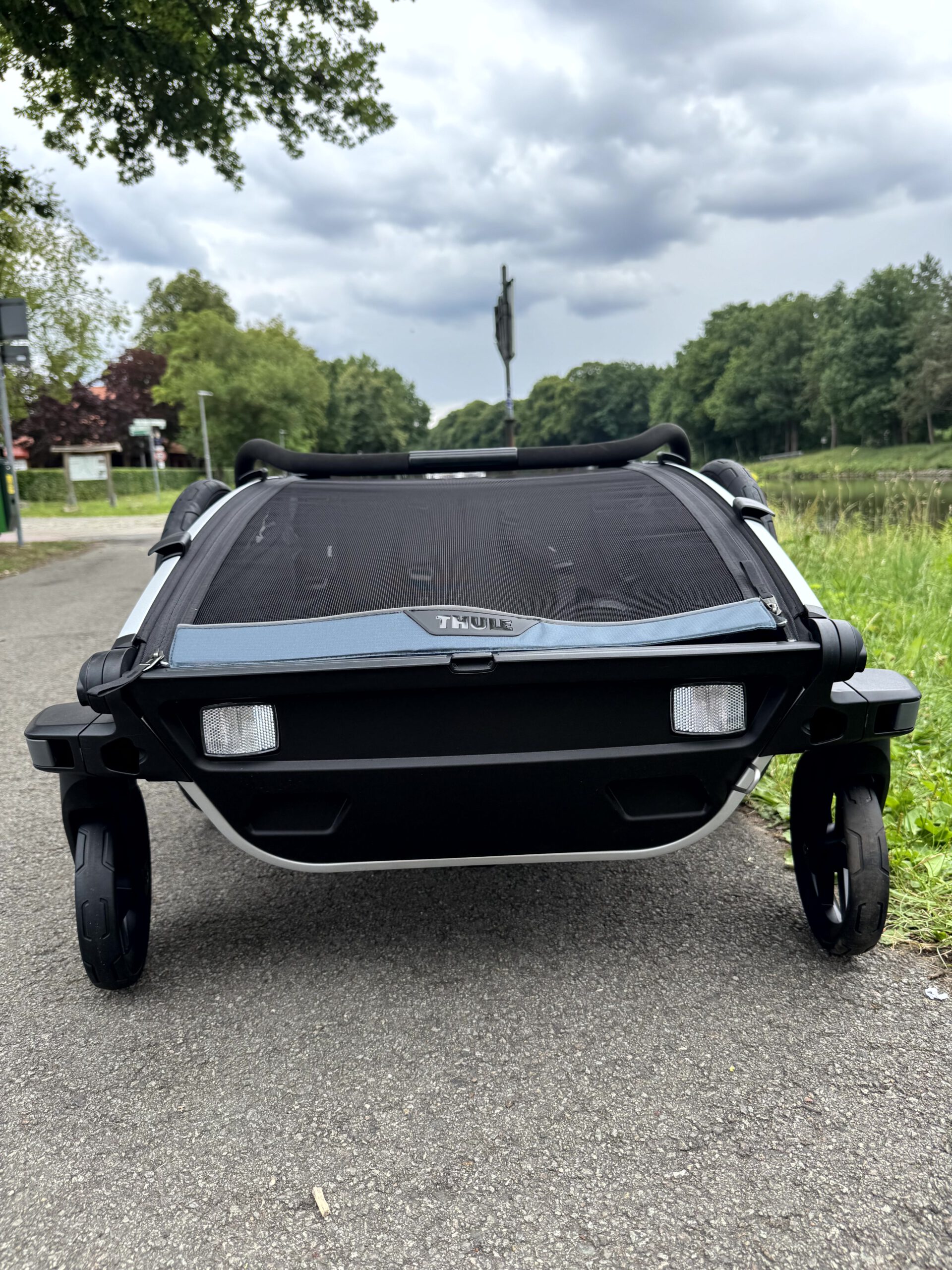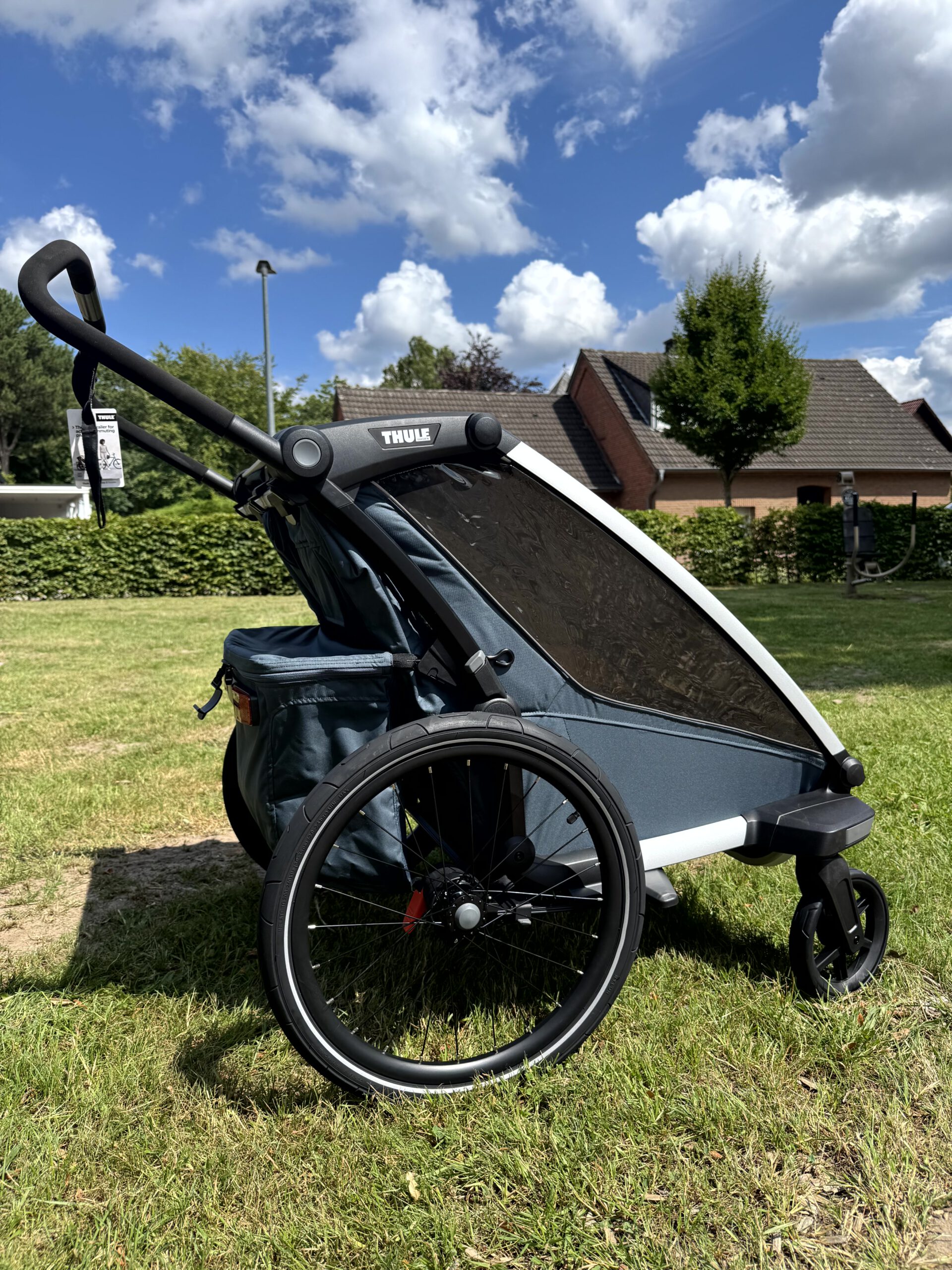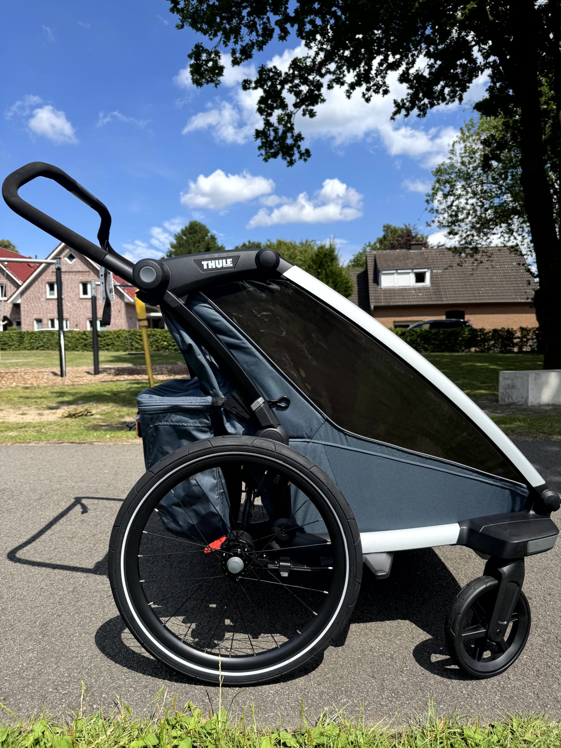 Thule Chariot Cross 2 Double – Der robuste und sichere Fahrradanhänger, der sich im Handumdrehen in einen Kinderwagen oder Jogger verwandeln lässt, ideal für Alltag und Abenteuer.