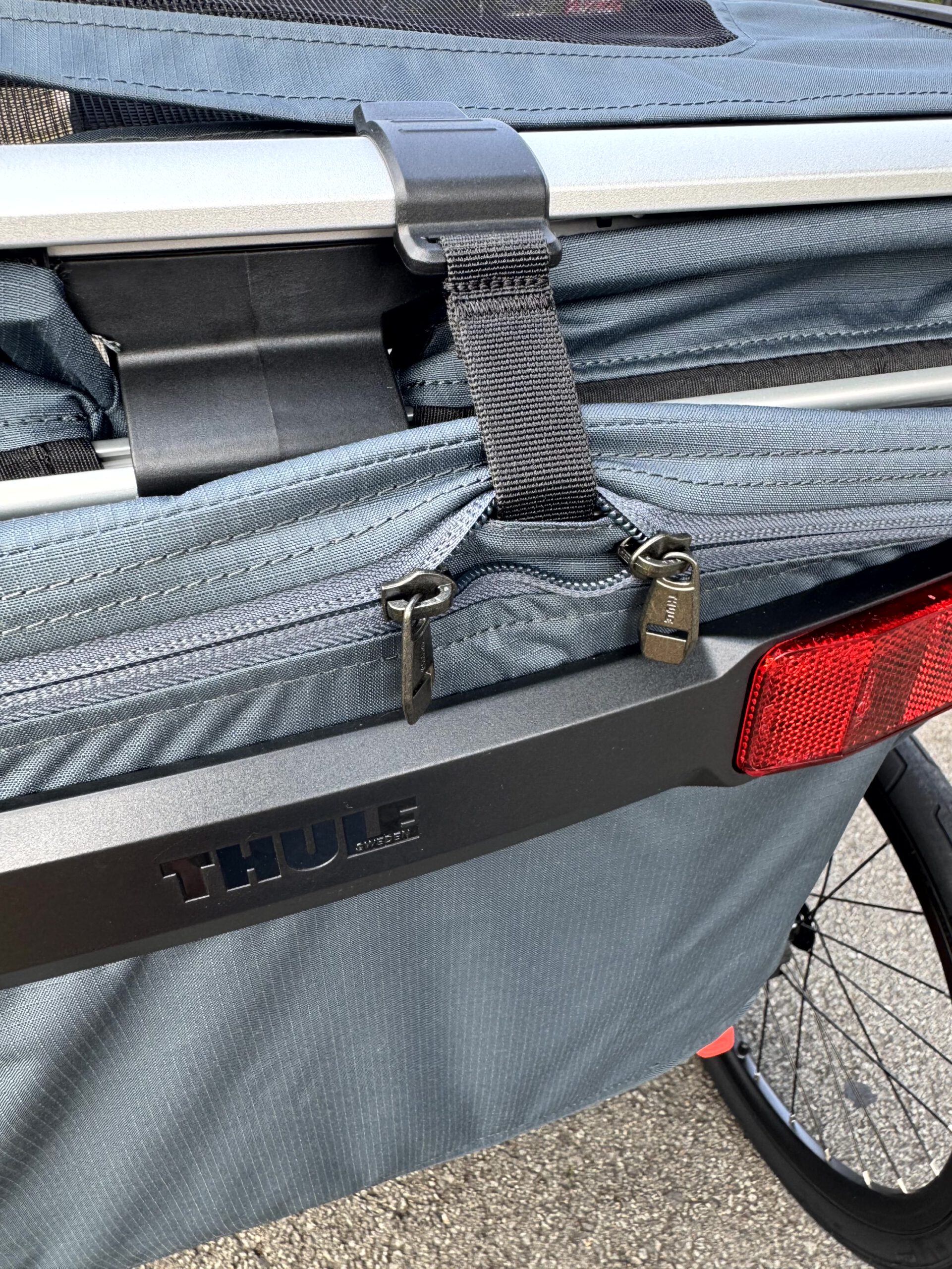 Abnehmbare Thule Delight-Rückleuchte plus reflektierende Details an Seiten und Rädern sorgen für hohe Sichtbarkeit unter allen Bedingungen.